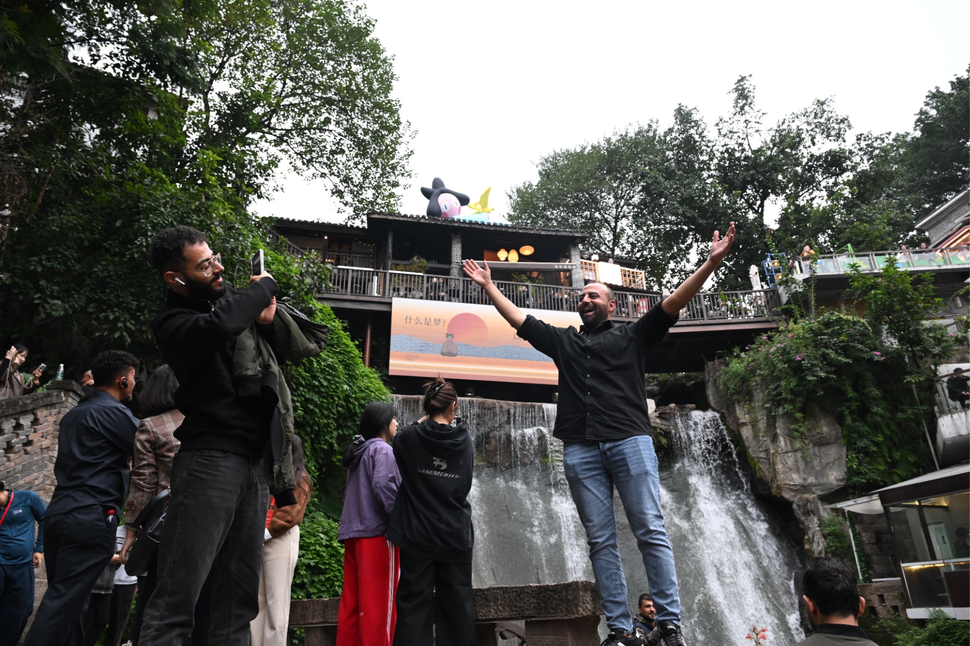 外媒在永川科技影視城打卡拍照(央廣網發 王淳 攝)