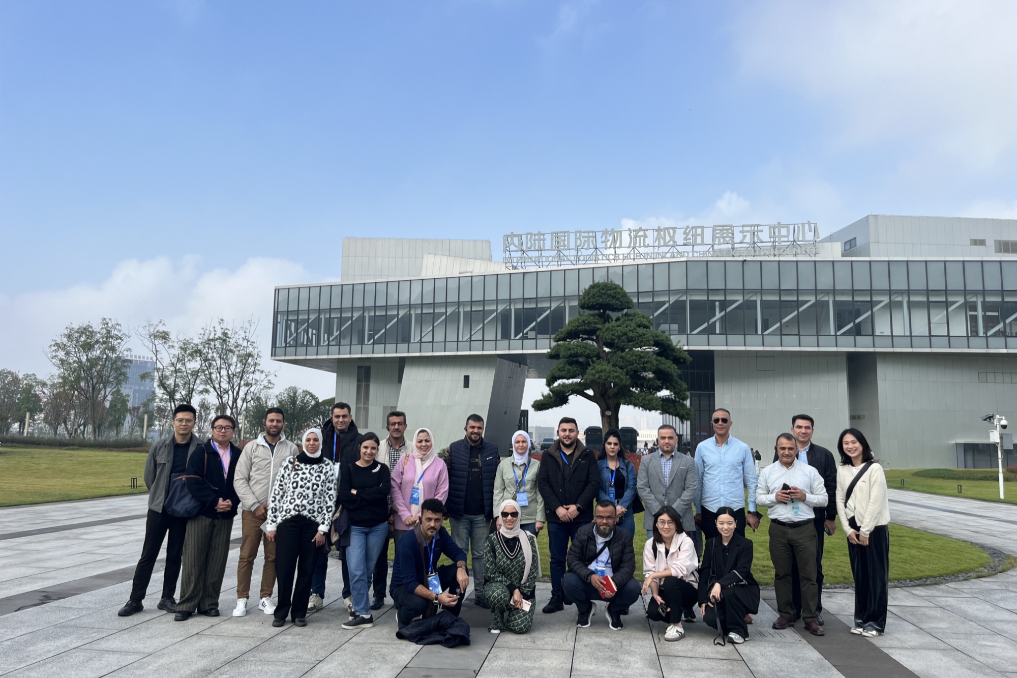 外媒在重慶國際物流樞紐園合影(央廣網發 Natalia 攝)
