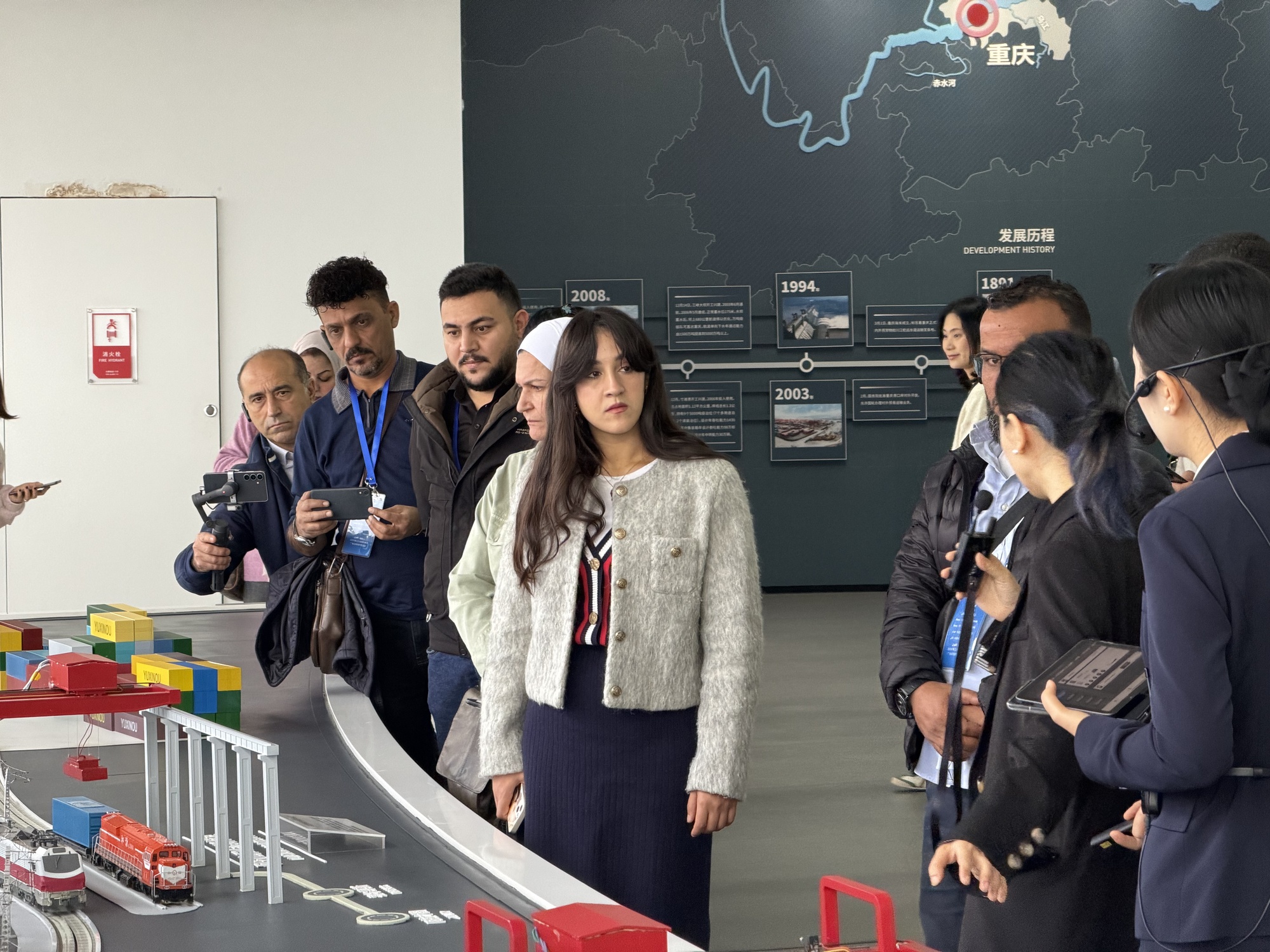 豐富多元的示意圖、直觀形象的模型,向參團成員們生動展現了重慶究竟是如何充分利用區位優勢,建成全國首個兼具港口型、陸港型、空港型、生產服務型、商貿服務型“五型”國家物流樞紐的城市。